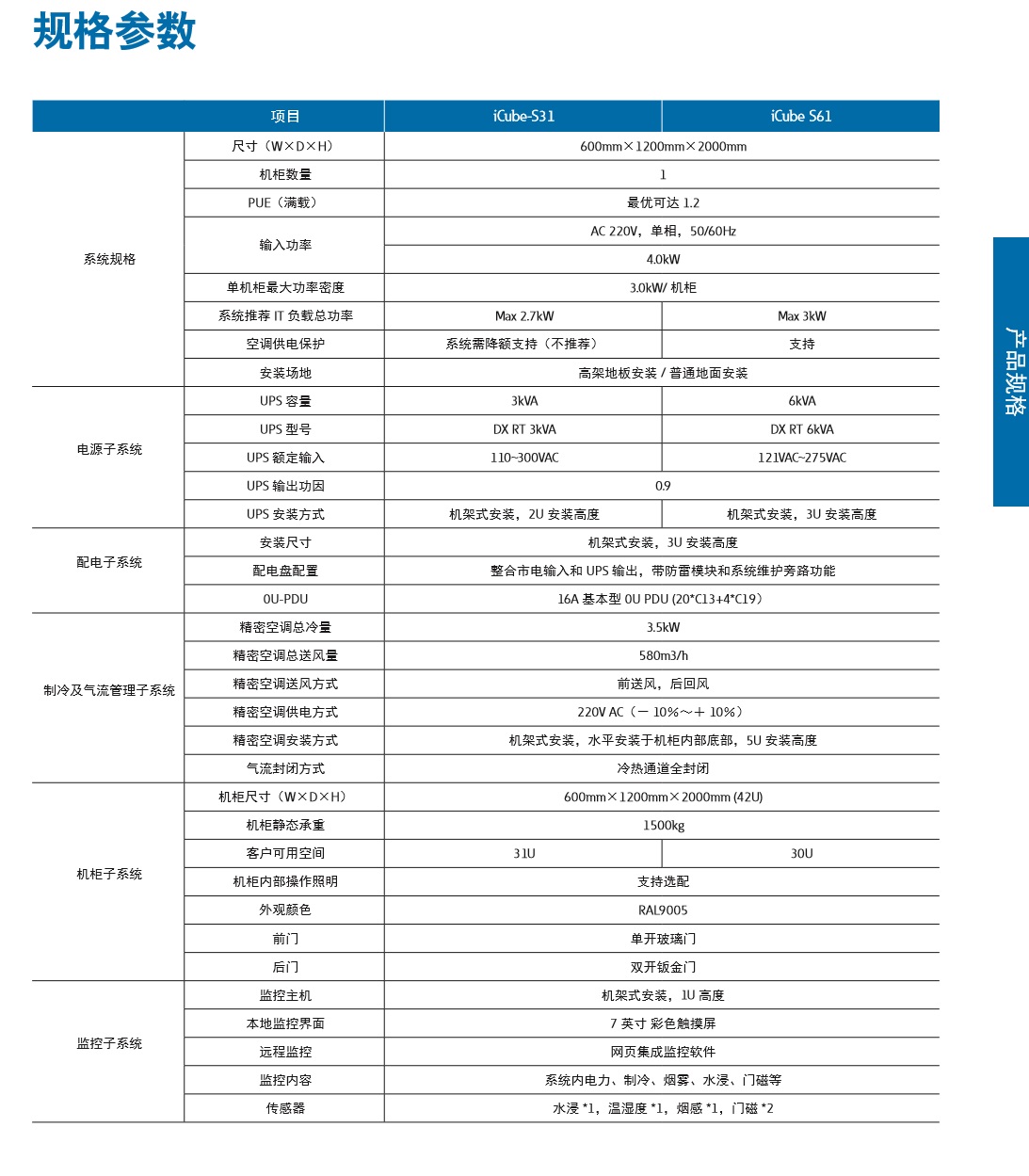 规格参数表