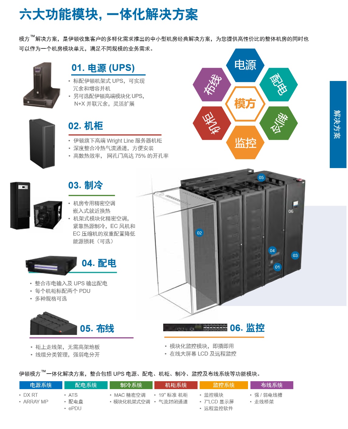 伊顿模方TM多机柜- -体化解决方案是伊顿根据用户的多样化需求而推出的中小型机房优秀解决方案。