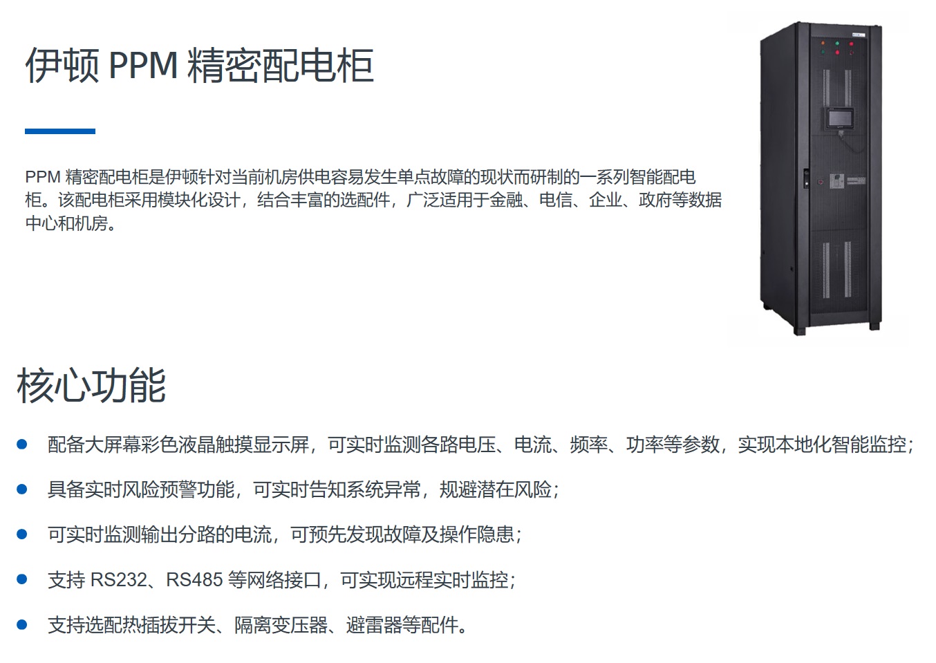 PPM精密配电柜是伊顿针对当前机房供电容易发生单点故障的现状而研制的一系列智能配电柜。